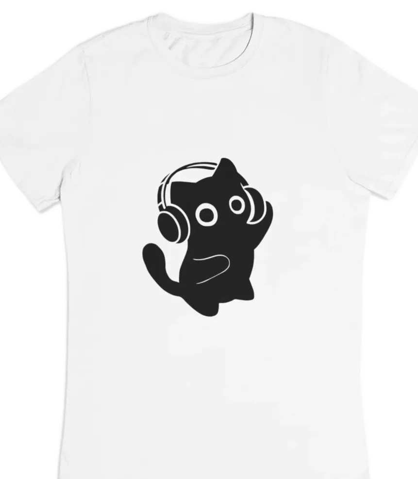 white t-shirt with black cat fun design